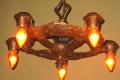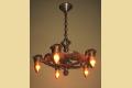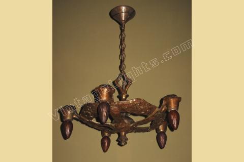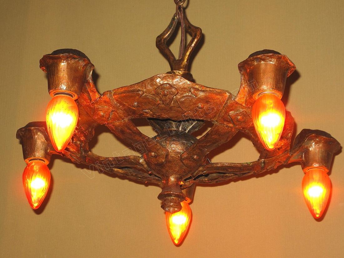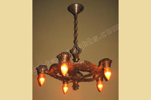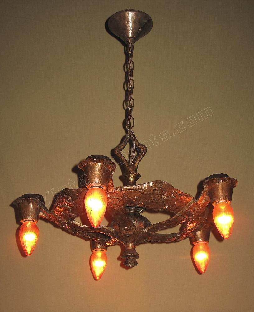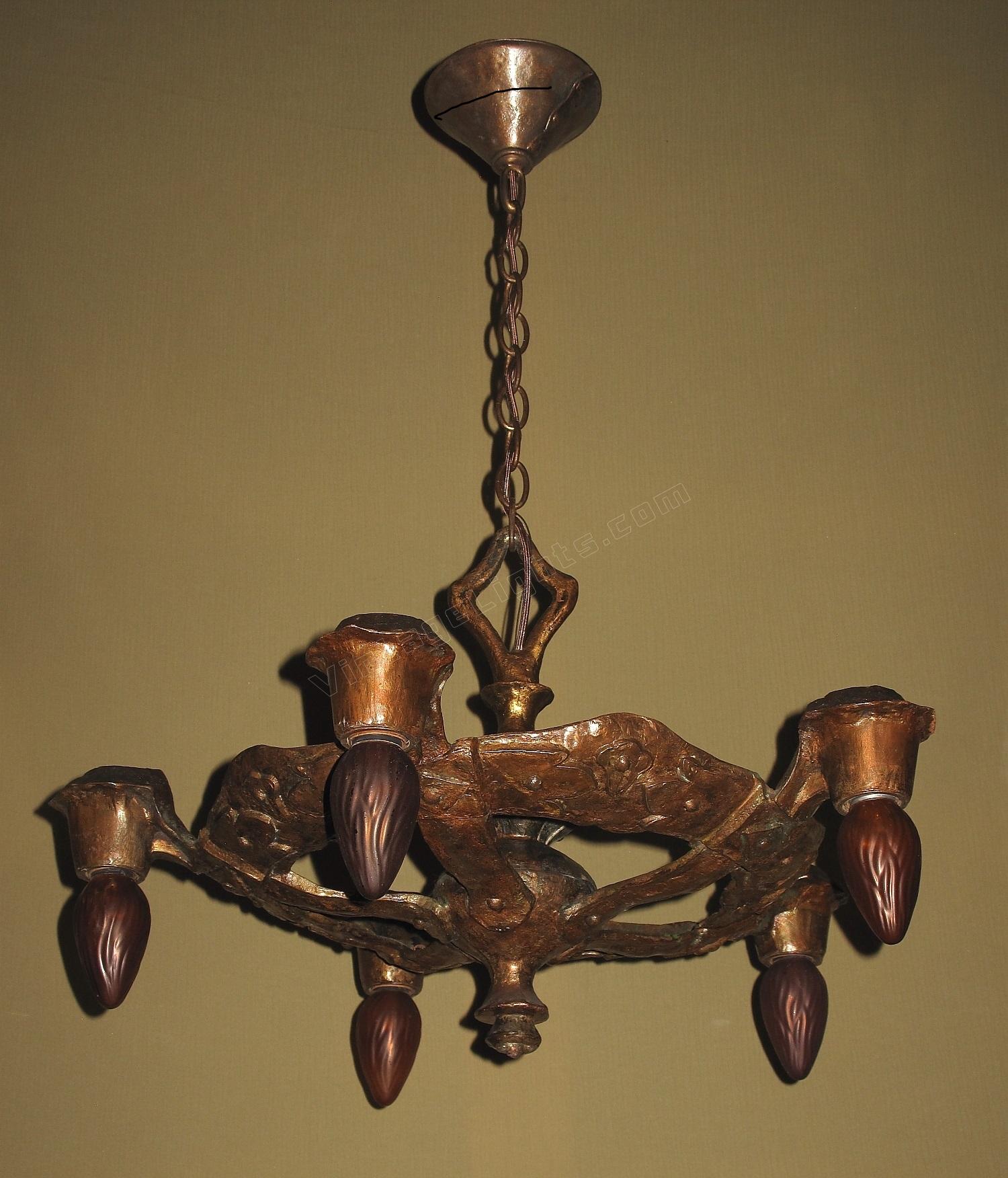 1920s Signed CB Rogers 5 Light Fixture in Original Colors and Patina