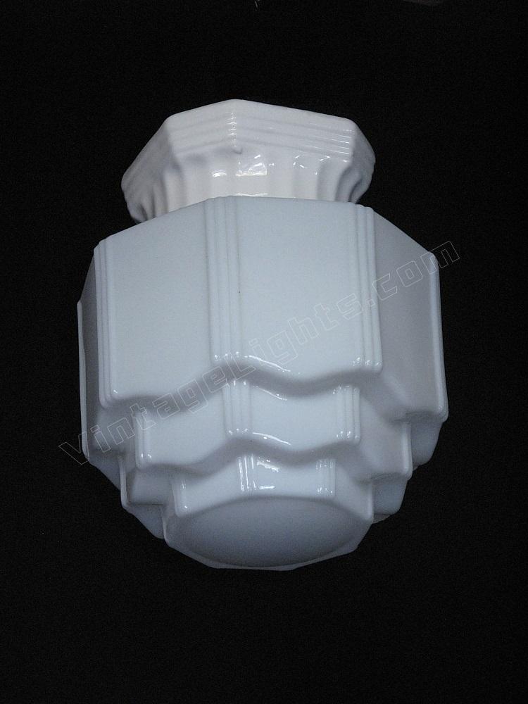 Vintage octagon milk glass globe on antique octagon porcelain fitter. Great looking all around vintage lighting fixture. Perfect for that vintage bathroom or kitchen remodel in any vintage style house. We have used several of these in our 1908 Craftsman.