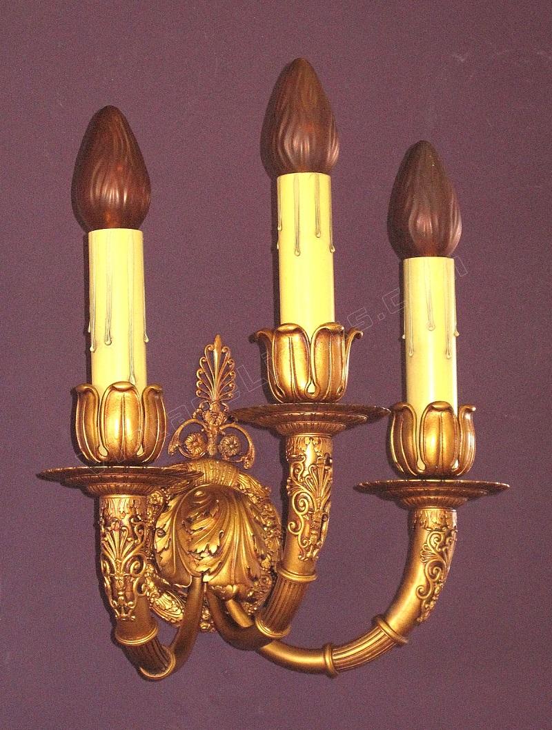 The level of quality workmanship in these sconces is quite impressive. Very finely detailed castings around each arm and covering the entire backplate shows a masters touch. The sconces are in their original finish and patina with only a gentle cleaning and light waxing. The fluted section of each arm is a most wonderful addition giving definition to the narrowing arm and a point of reference for the overall balance and proportions.