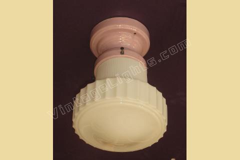 Vintage Lavender Porcelain Ceiling Fixture with Vintage Milk Glass Globe