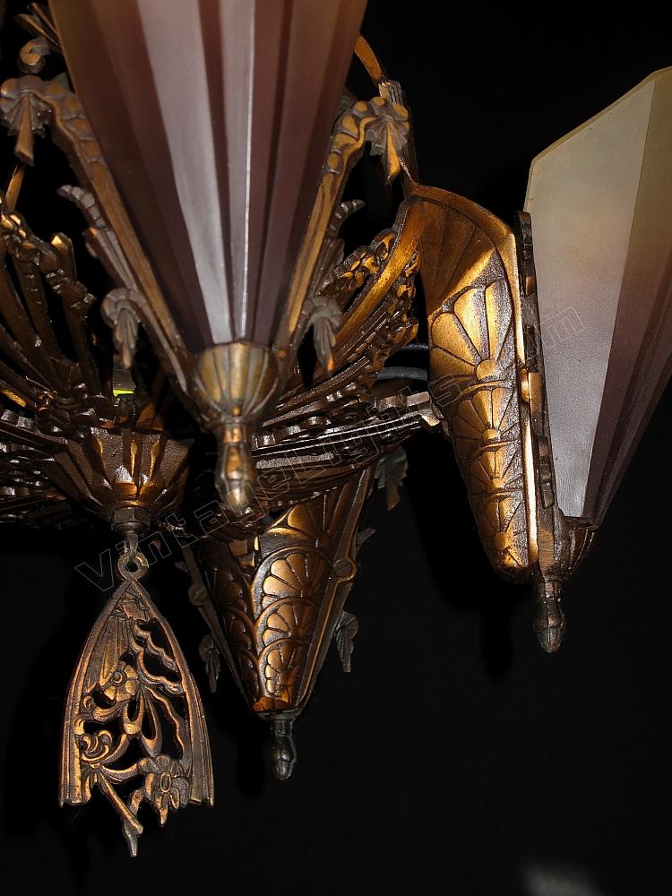 A look at the close up images and you will immediately see why these fixtures are highly sought after and prized. Solid bronze construction with an almost unbelieveable amount of detailing in the bronze fillagree for a production item of the '30s.