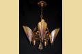 1930s Bronze Brown Tip Slip Shade Chandelier. All original