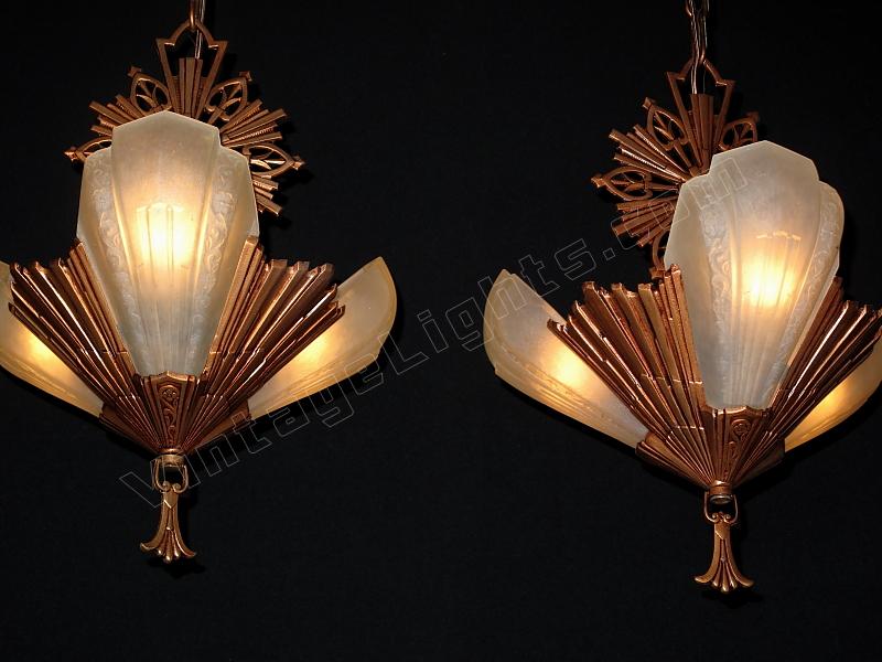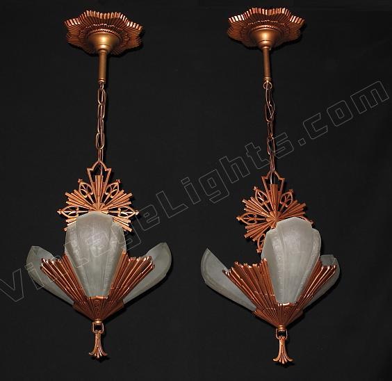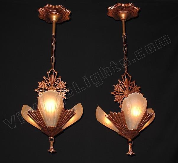 3 Slip Shade Vintage Art Deco Vintage Fixtures. c.1930 priced each