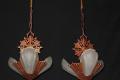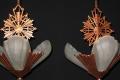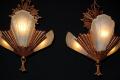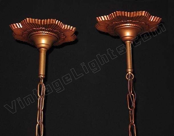 Matched pair of refinished Art Deco slip shade ceiling fixtures. Starburst design on fixture with subtle floral design on shades. Priced each. See matching wall sconces Item Code: WAL20090630008
