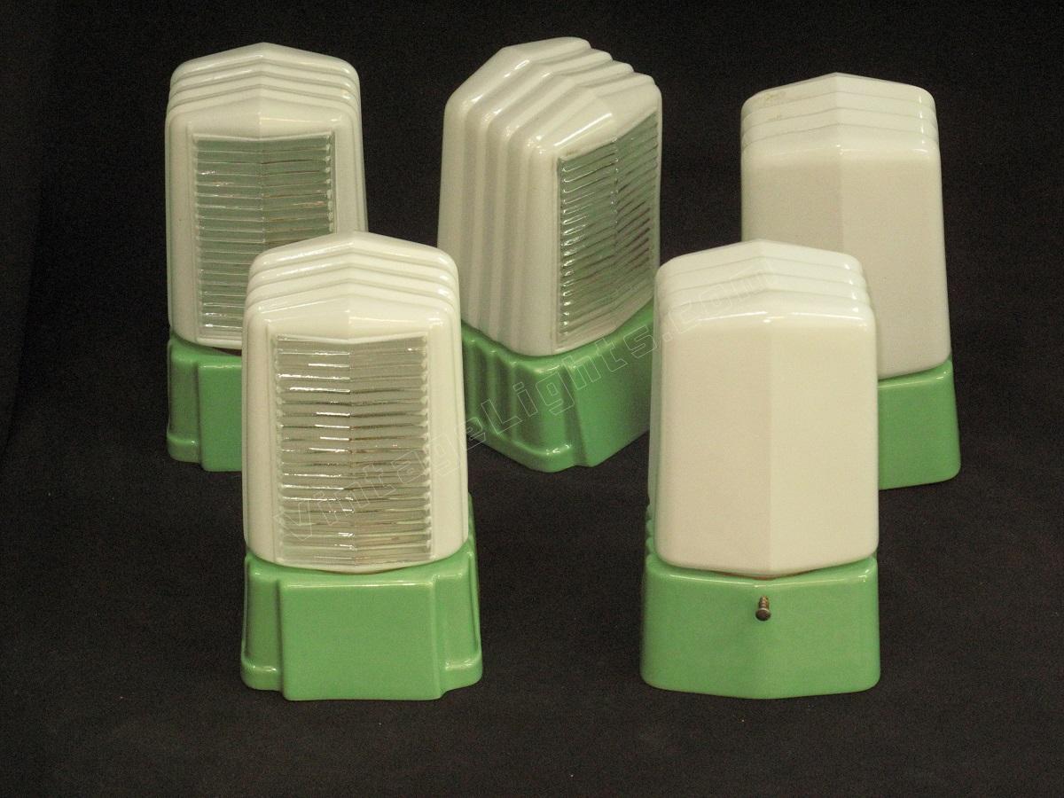 5 Bungalow Green Porcelain Sconces, NOS priced each