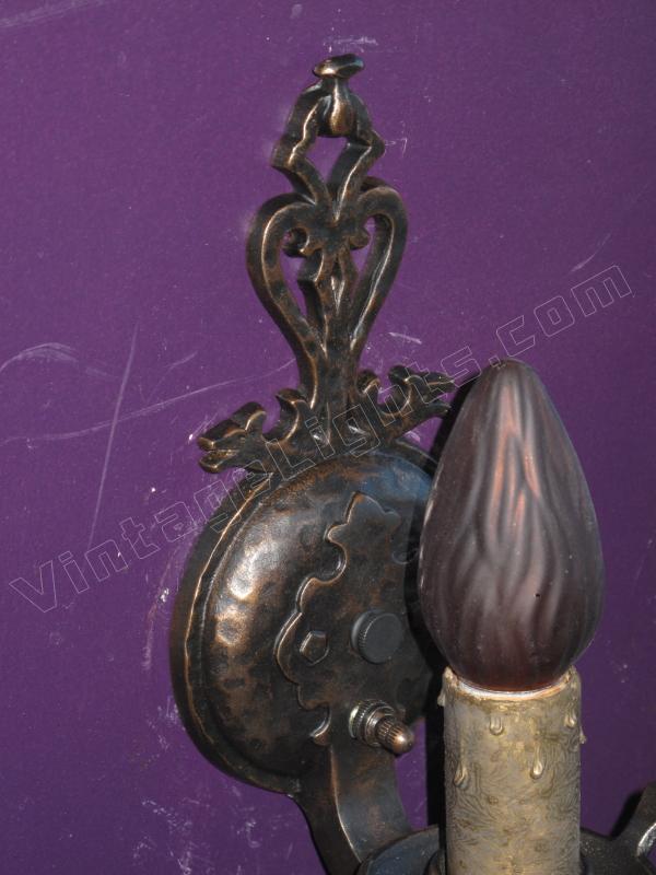 All have a restored antique bronze painted finish. Candle sleeves may differ slightly than the ones shown in these images.
