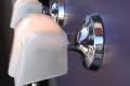Great looking antique Bathroom wall sconce. Clambroth refers to the color of the shade, more opaque than milk glass. Chrome is in excellent condition. Would work as well in a kithen over the sink.
