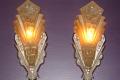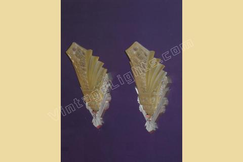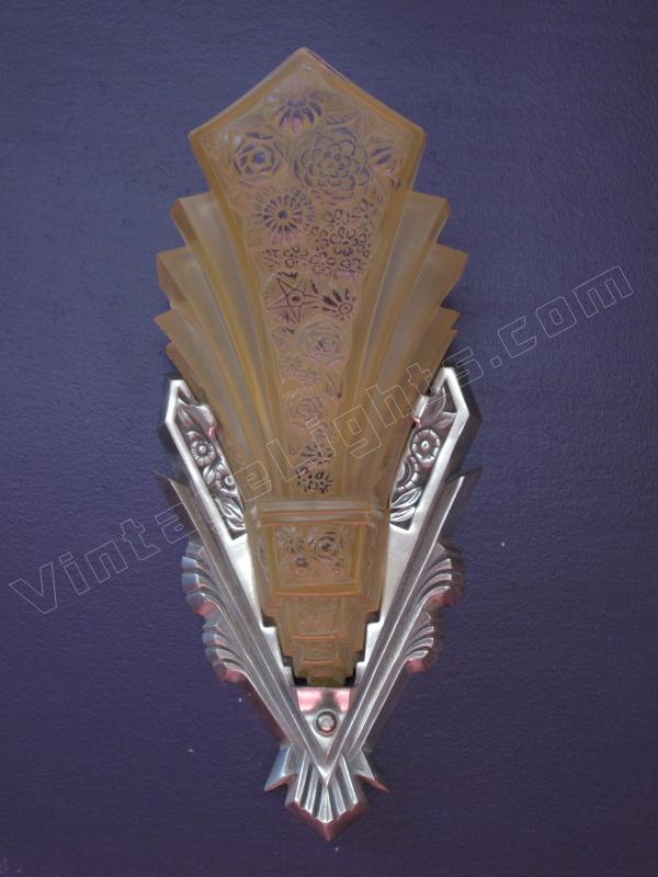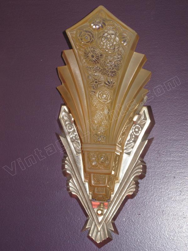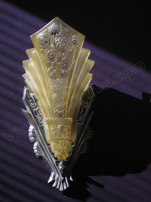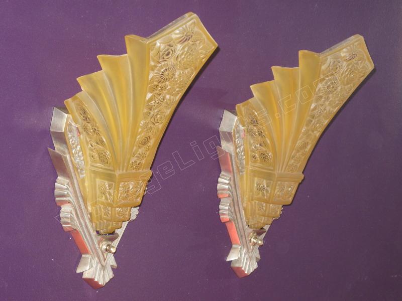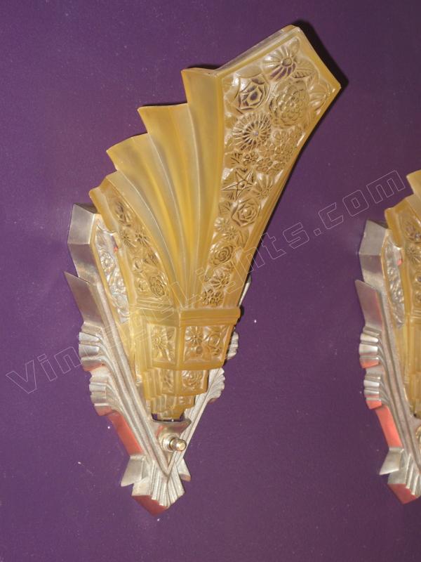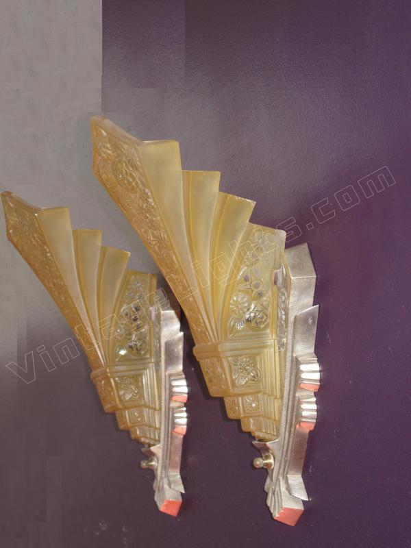 ON HOLD Pair Massive Art Deco Wall Sconces Nickel Finish and Consolidated Shades. Home Theater!