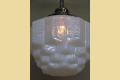 A wonderfully unique treatment to these shades from the Art Deco period. The crackle finish adds a huge amount of visual interest along with the coloration and a milky hue to the entire globe. The crackle finish is achieved by dunking the still hot, formed shade briefly into water where the outside of the glass cools and shrinks but the inside remains hot and plastic enough not to crack all the way through.