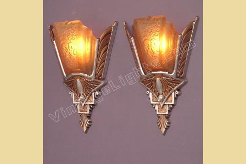 Pair Spectacular Vintage Art Deco Slip Shade Sconce