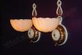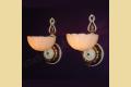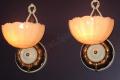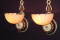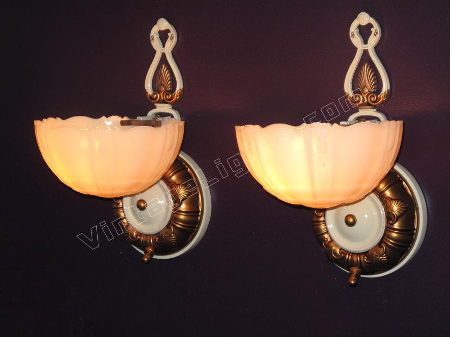 Pair Vintage Mid-Century Deco Custard Slip Shade Sconces