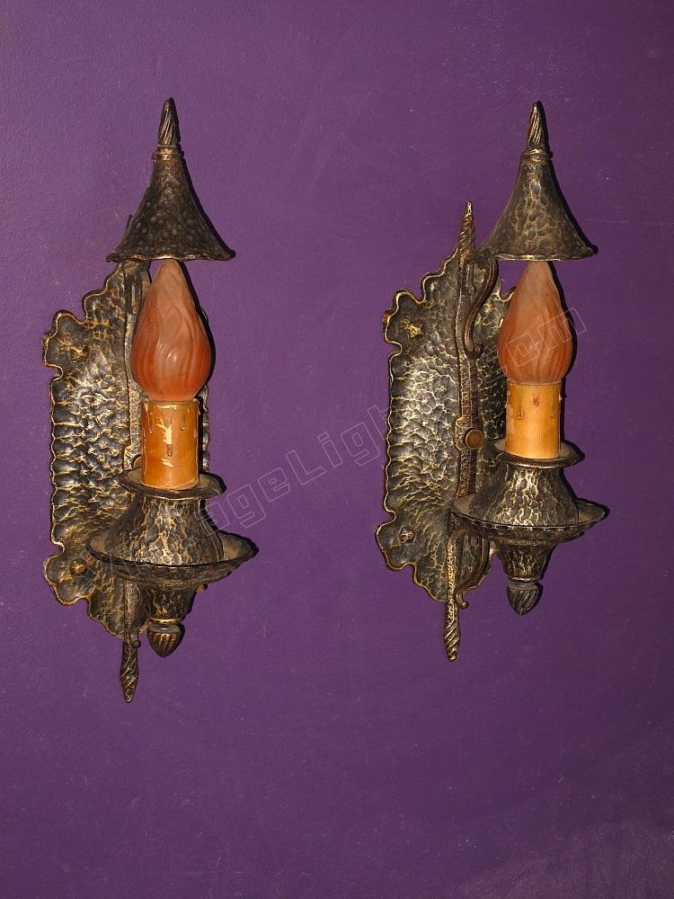 Pair Vintage Storybook Style Sconces Hammered Finish