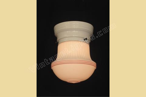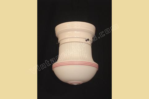 Smaller Milk Glass Shade with Original Red Strips on Porcelain Fitter