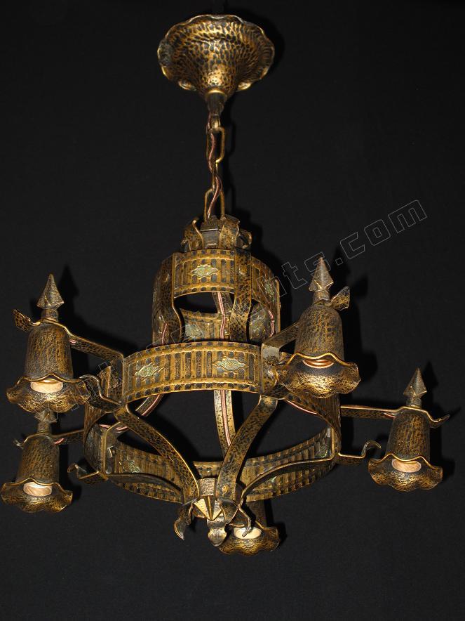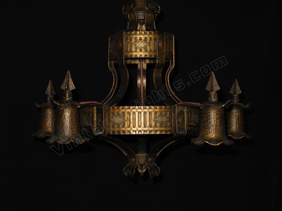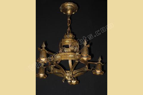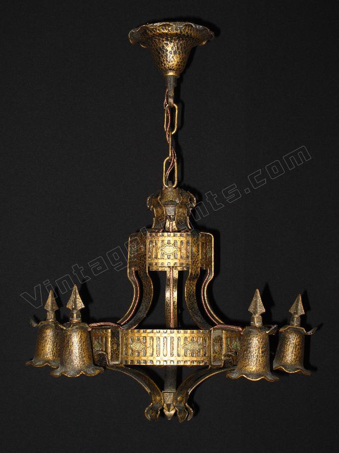 SOLD 1920s Spanish Revival 5 Arm Vintage Light Fixture Original Paint