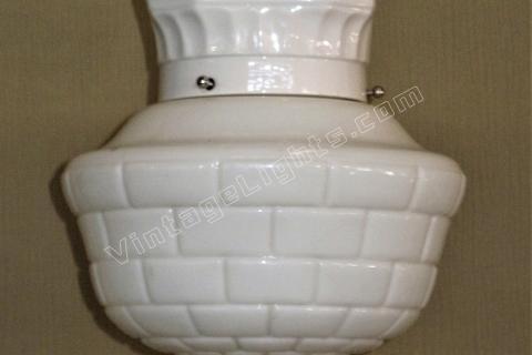 White subway tile became popular in bathrooms and kitchens during the 1920s, usually as backsplashes or wainscoting, but also as walls and flooring. It is still a popular style in today's homes. Here is a vintage globe patterned after that style and sized for kitchen and baths of their day so they are the perfect size for Bungalows or cottages. A great combination if you have subway tile of any color.