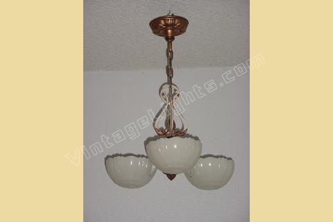 Vintage 3 Slip Shade Antique Lighting Fixture with Custard Glass