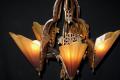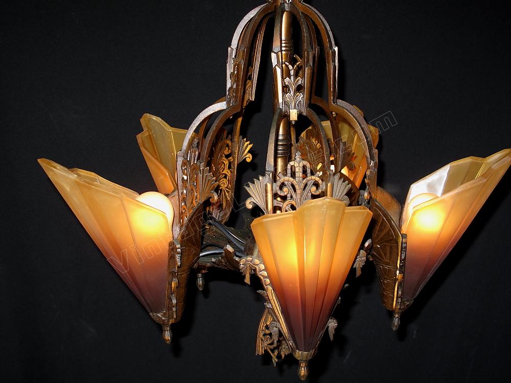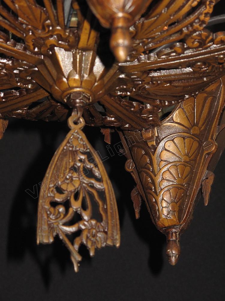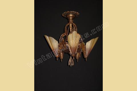 Vintage Semi-Flush Mount Bronze Brown Tip Slip Shade Chandelier