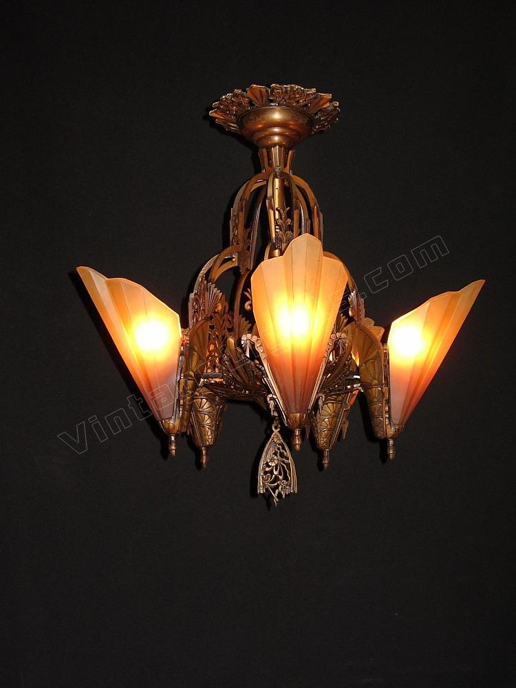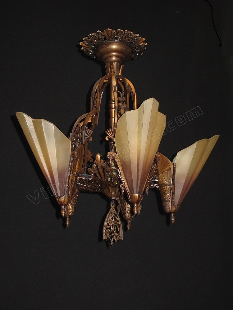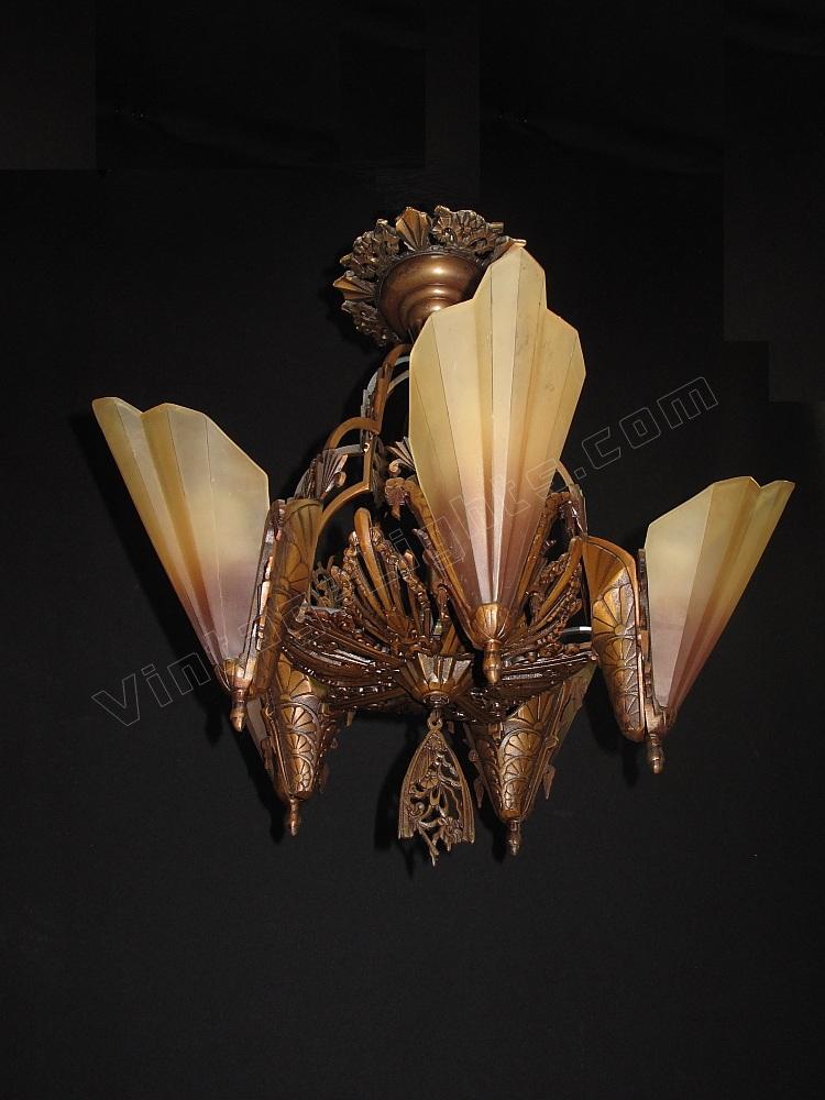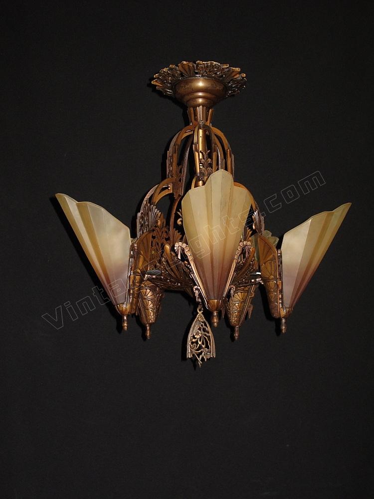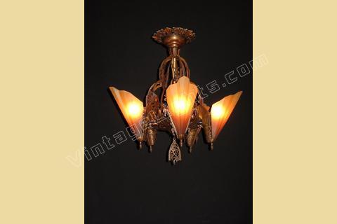 Vintage Flush Mount BrownTip Slip Shade Chandelier .