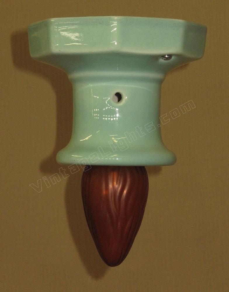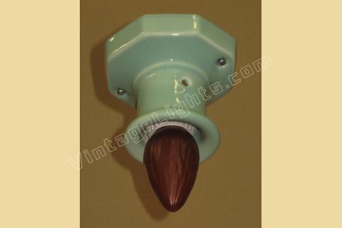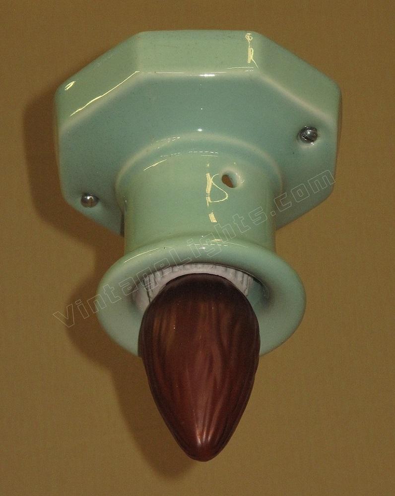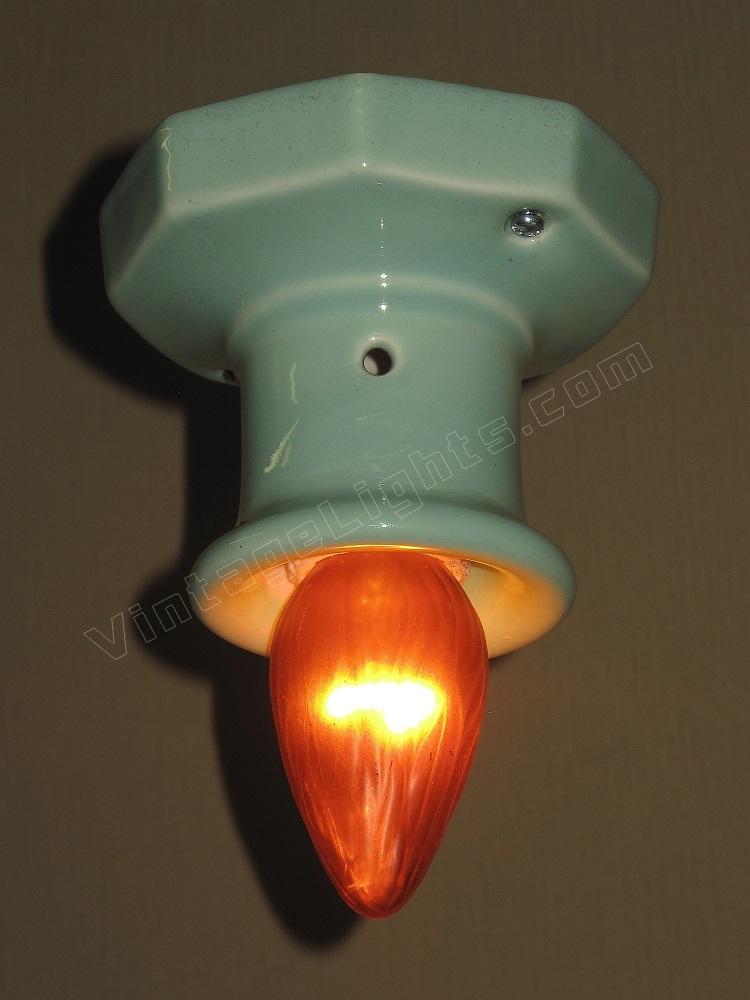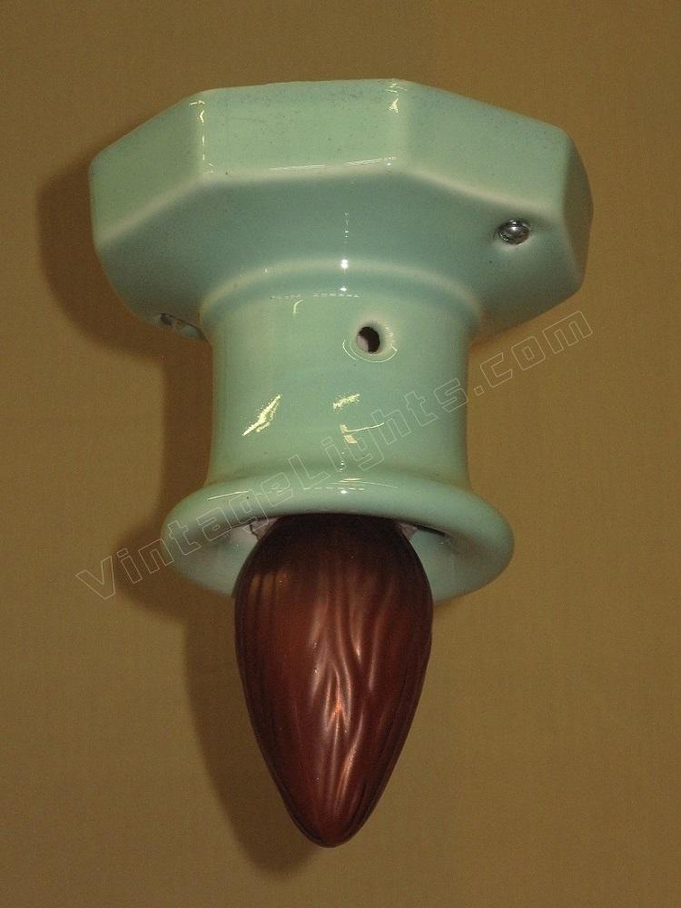 Bare bulb fixture in the color Seafoam Green. Used for either wall or ceiling. 1920s - 30s vintage. Excellent condition with no chips or cracks.