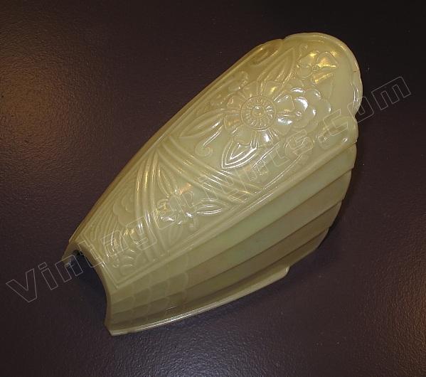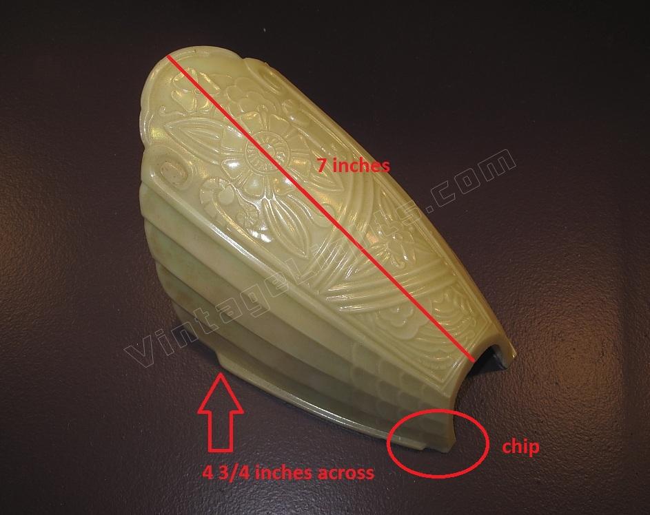One of less frequently seen slip shades of the 1920s - 1930s. We have only seen this style but have been told there is another with the same pattern but a little different mounting shoulder on the glass. See image for dimensions.