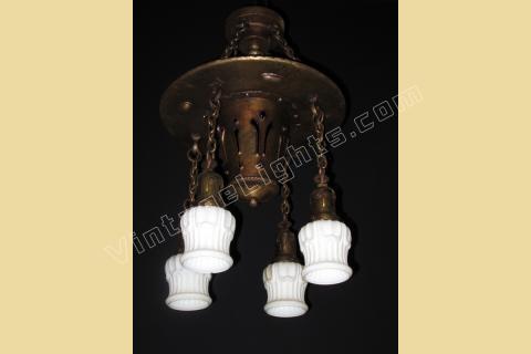 Shown with milk glass shades also found in a 1908 Craftsman