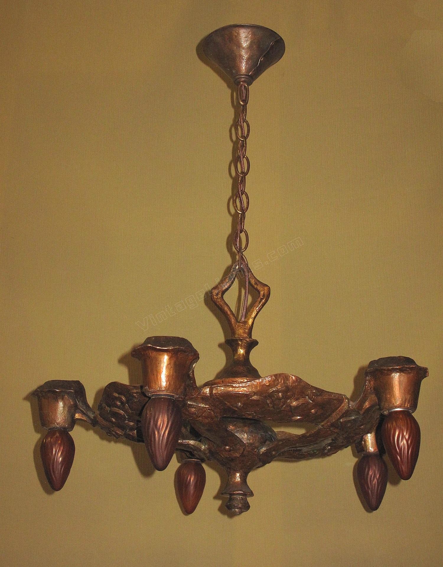 1920s Signed CB Rogers 5 Light Fixture in Original Colors and Patina