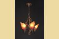 1930s Bronze Brown Tip Slip Shade Chandelier. All original
