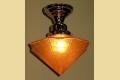 Vintage 1930s pyramid shaped apricot colored shade on new nickel plated ceiling fitter. Can be lengthened with a pole or chain mount.