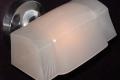 Great looking antique Bathroom wall sconce. Clambroth refers to the color of the shade, more opaque than milk glass. Chrome is in excellent condition. Would work as well in a kithen over the sink.