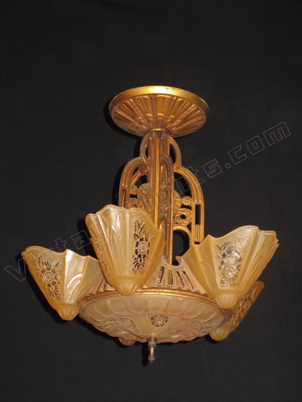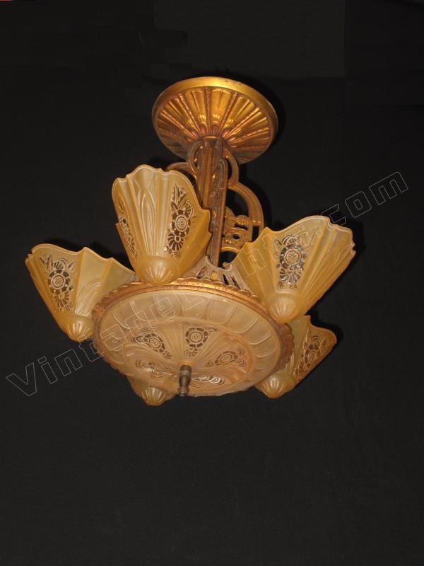 Consolidated Glass 6 Shade Slip Vintage Light Fixture