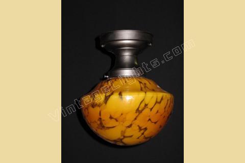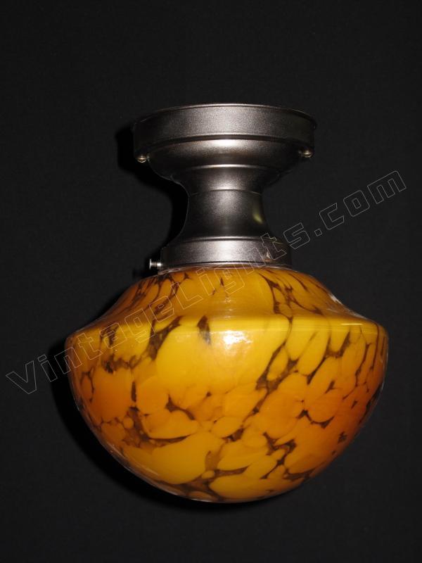 1920s shade hand blown with "cased" butterscotch and clear. Cased refers to the technique of blowing two or more pieces of glass together to form a layered look.