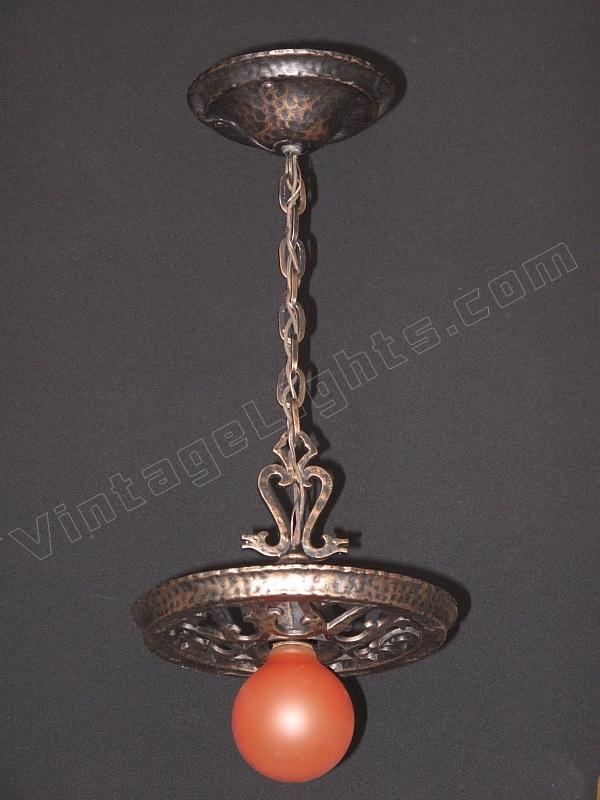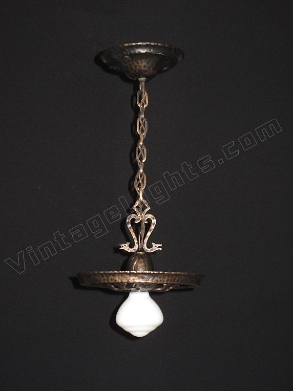 Hammered Arts & Crafts Pendant Lighting Fixture Dogs Head