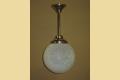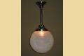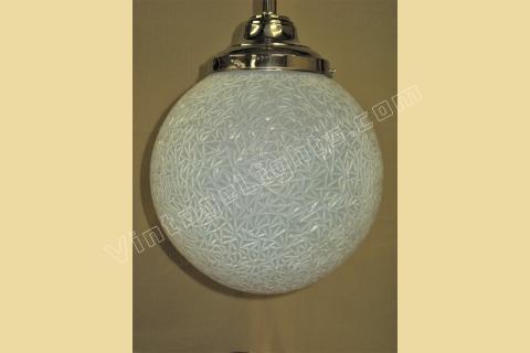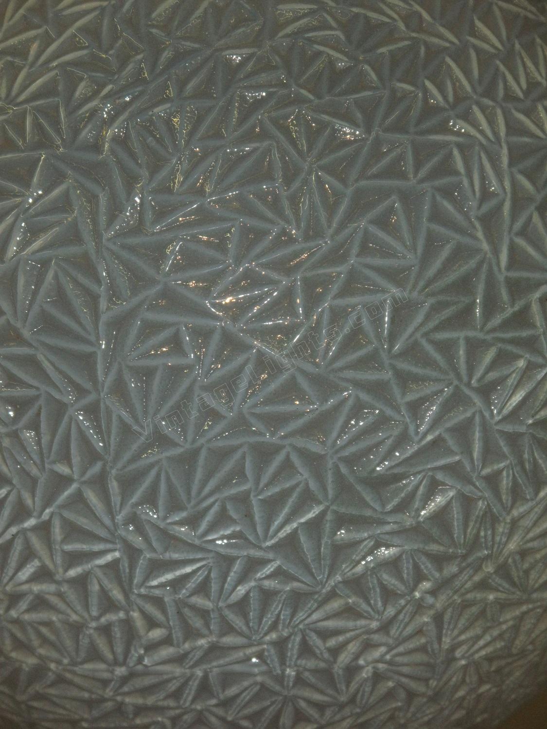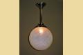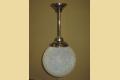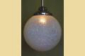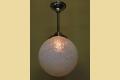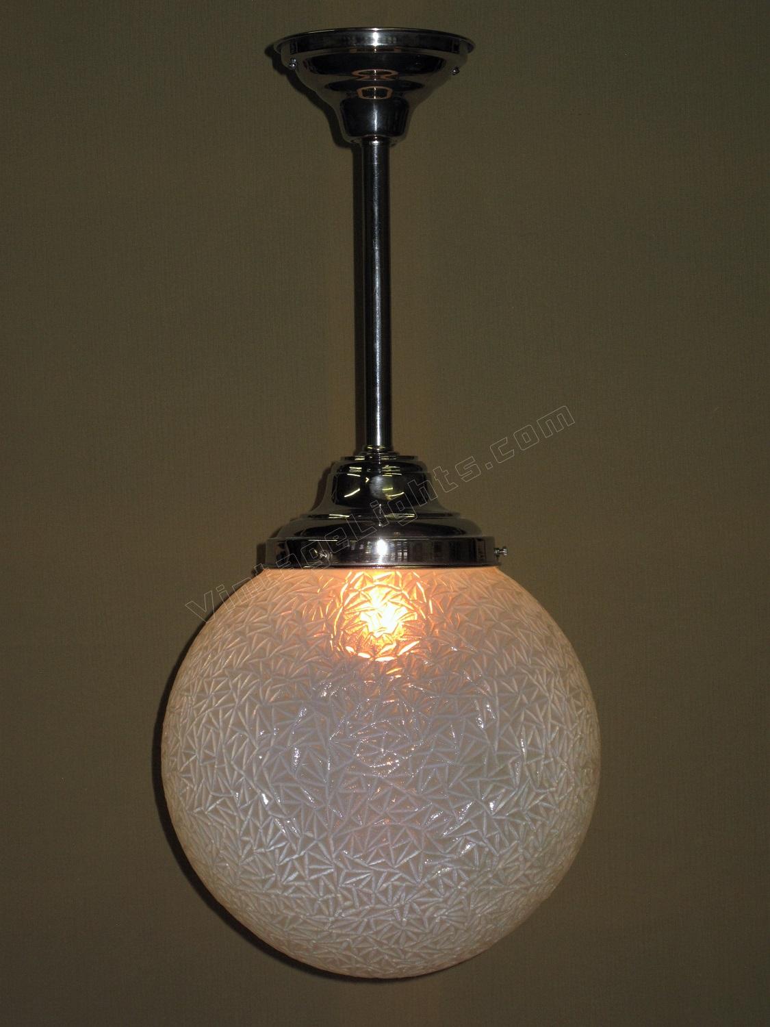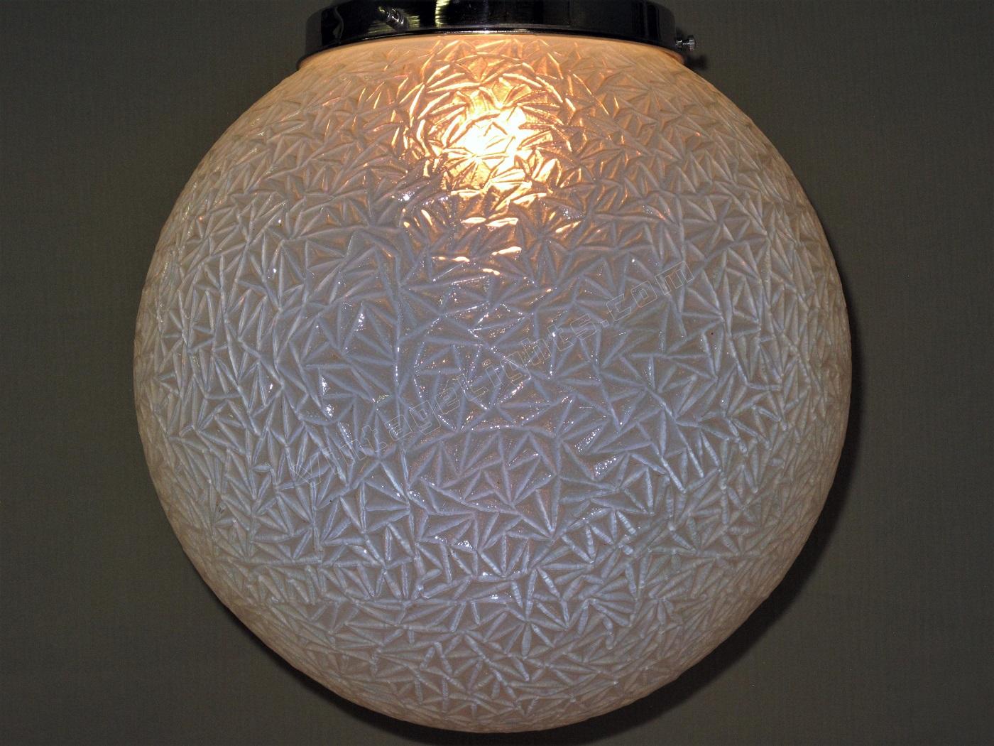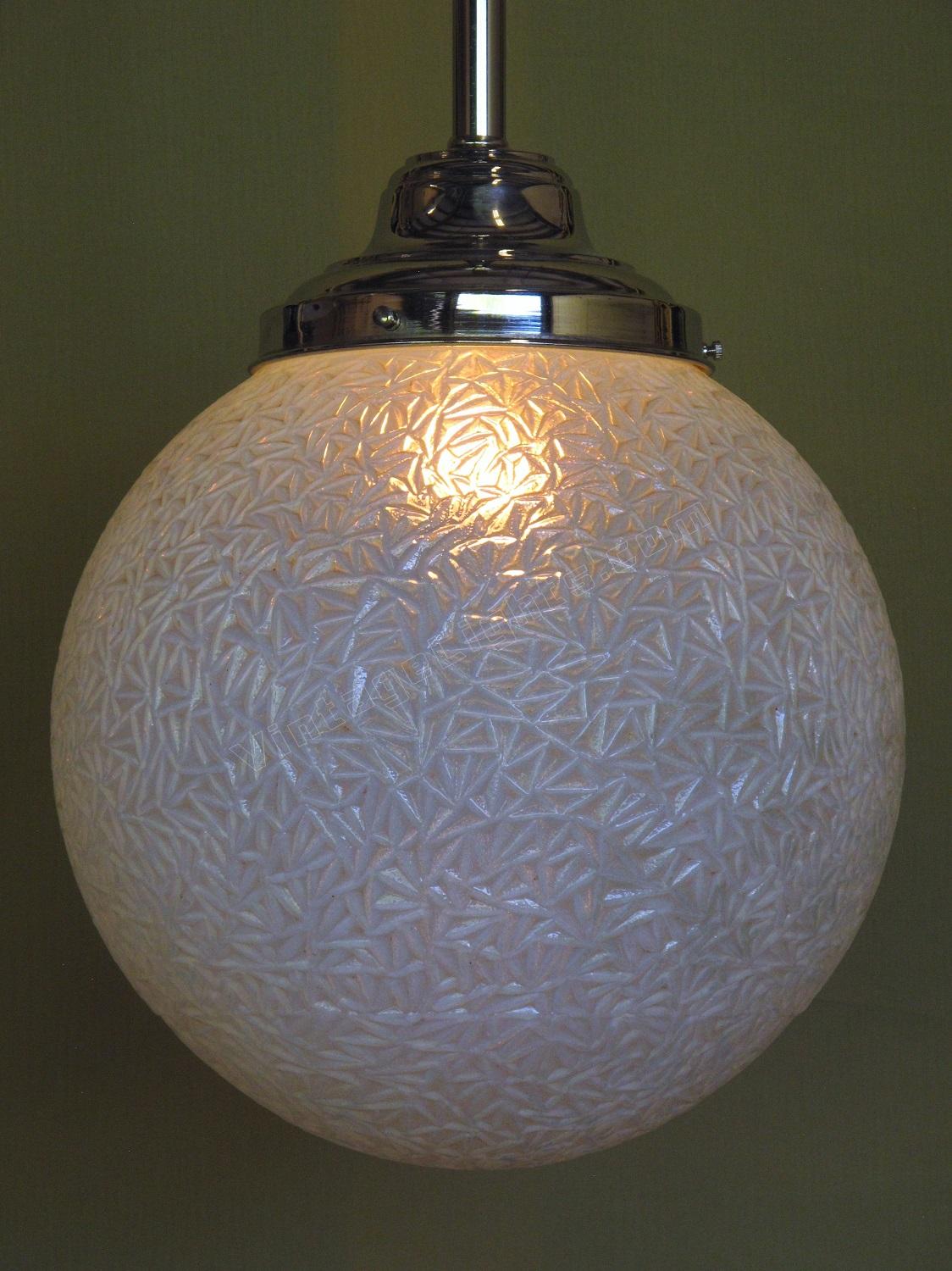 12 inch round blue globe with a detailed surface commonly referred to as ice due to the similarity of the way ice crystals form. Dates to the 1920s or early 30s and although it does not have an identifiable deco design we would confidently put this into the Art Deco box. Not many fixtures can add the amount of intriguing texture to a room the way this one does.
