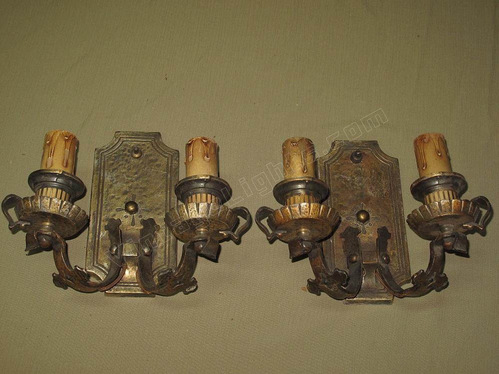 ON HOLD Pair w/ Original Finish & Patina 2 Bulb Craftsman Lodge Tudor Sconces 3 available priced per
