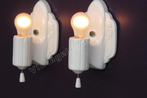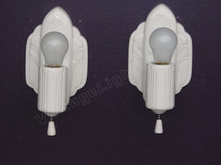 Pair Antique White Porcelain Kitchen Bathroom Art Deco Wall Sconces