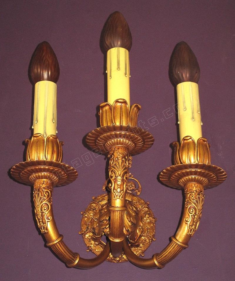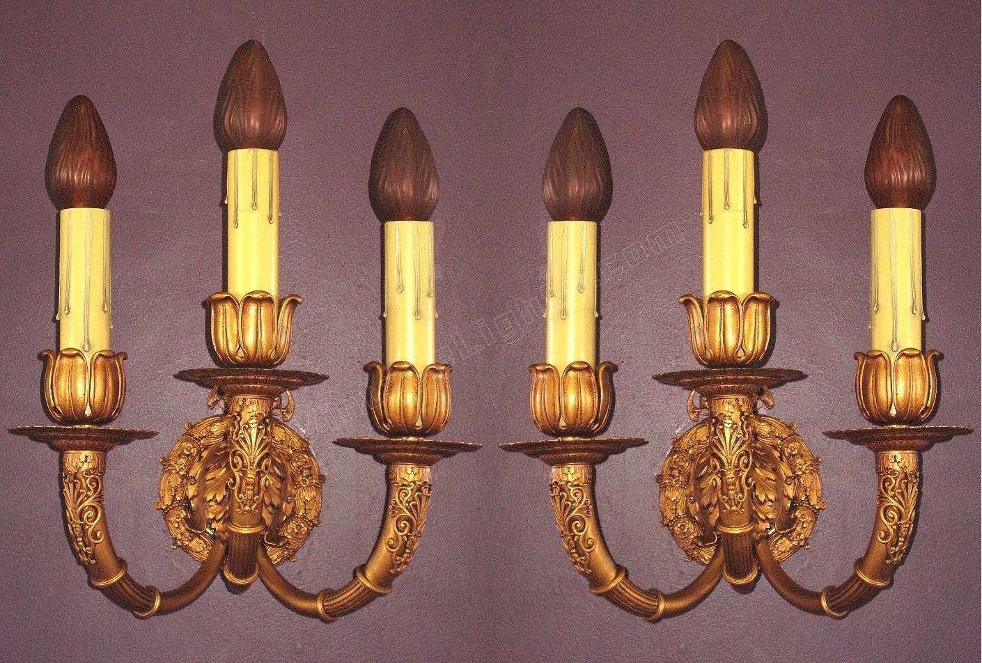 The level of quality workmanship in these sconces is quite impressive. Very finely detailed castings around each arm and covering the entire backplate shows a masters touch. The sconces are in their original finish and patina with only a gentle cleaning and light waxing. The fluted section of each arm is a most wonderful addition giving definition to the narrowing arm and a point of reference for the overall balance and proportions.