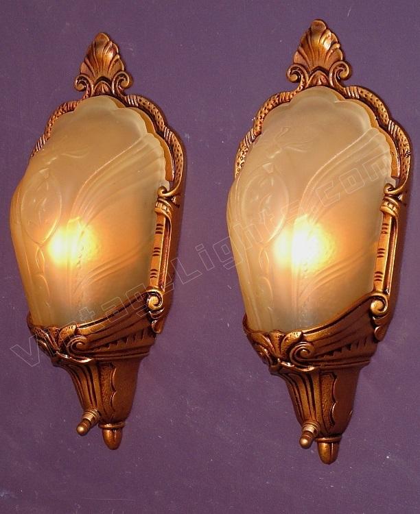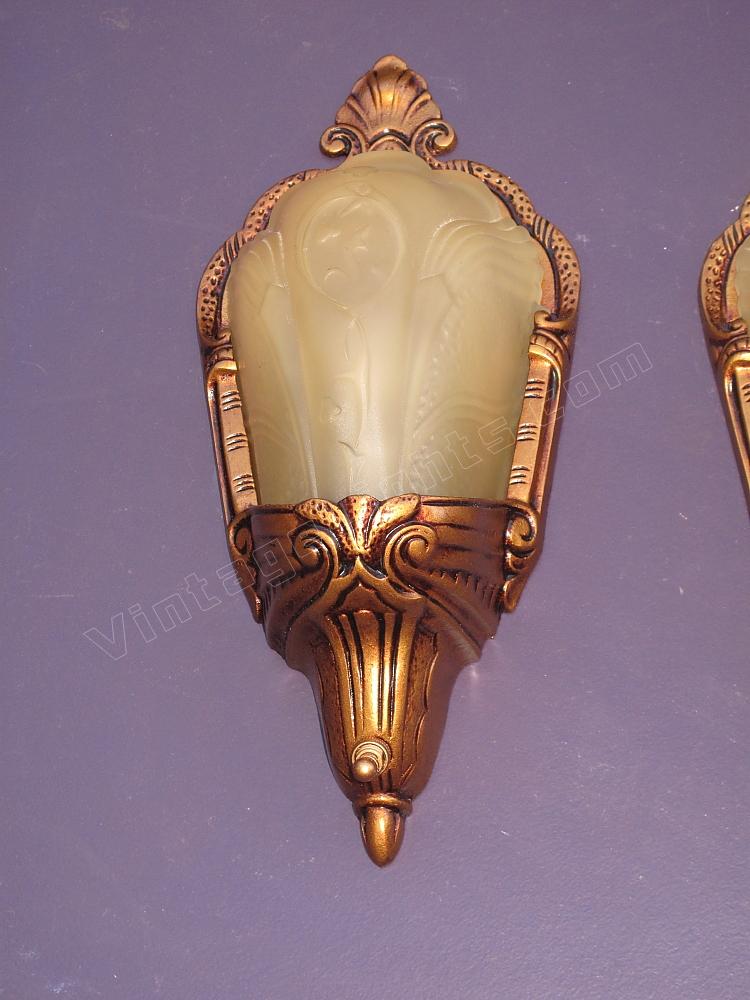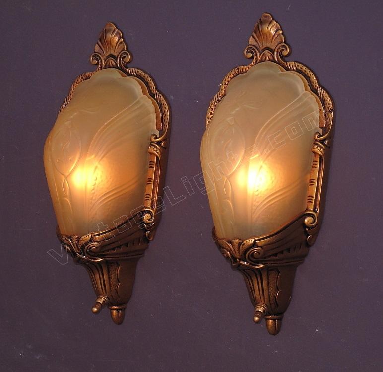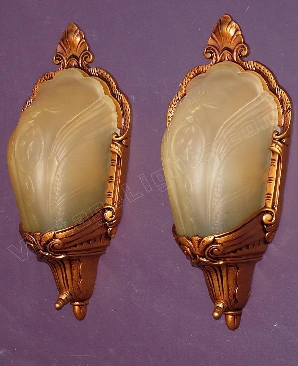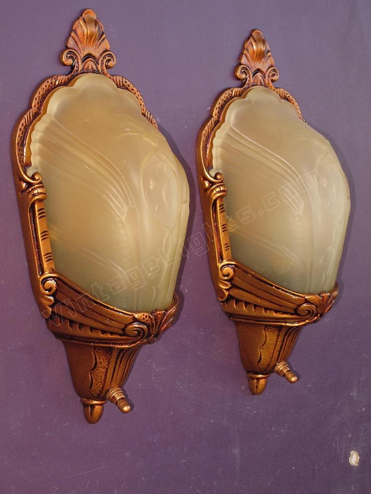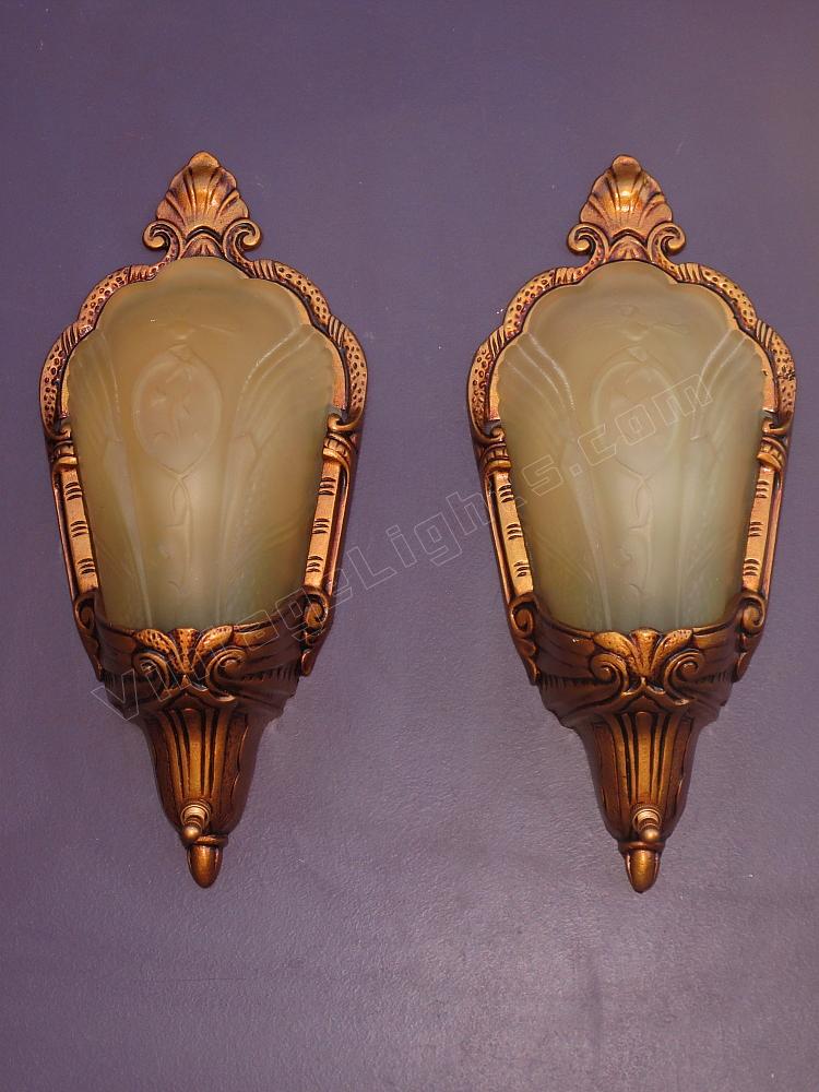 If you are dealing with building codes which require a completely covered bulb for a walk in closet these wonderful antique slip shade wall sconces could be just the answer. Or if the question is "What vintage sconces would be the perfect complement to our eclectic living room?" again these could be just the answer.