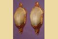 Made from cast iron the backs have been refinished in an original color scheme of their time. The decoration is a little more formal than most of these slip shade designs of the art deco period.