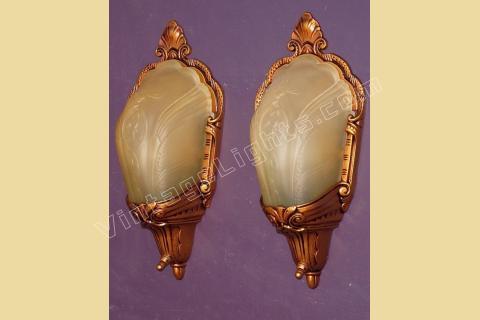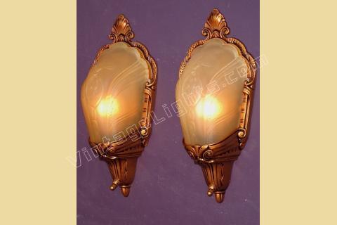 Pair of Vintage 1930s Slip Shade Covered Bulb Wall Sconces