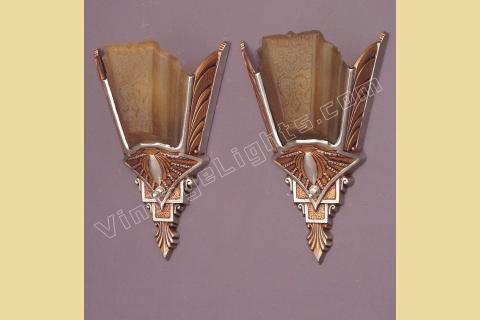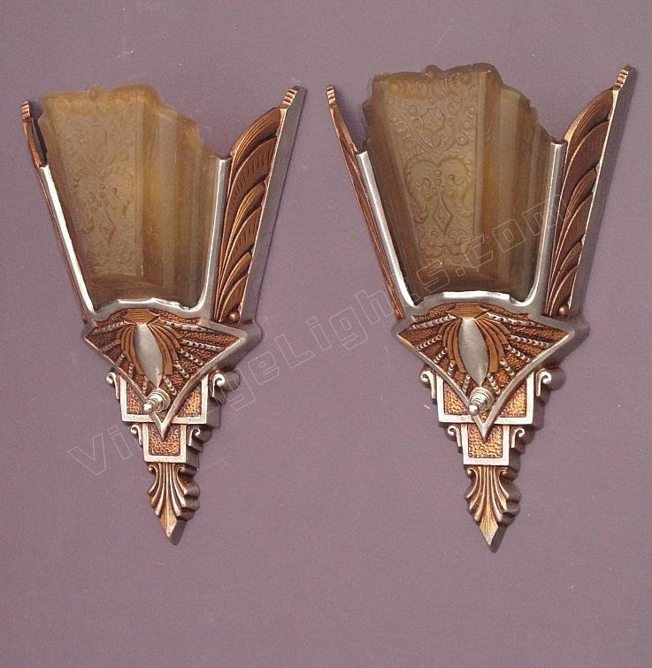 Pair Spectacular Vintage Art Deco Slip Shade Sconce