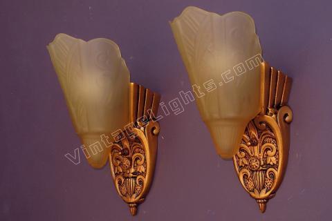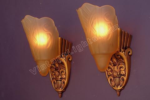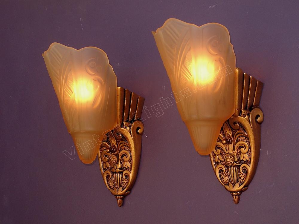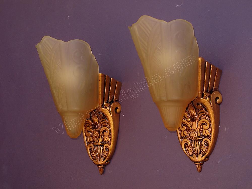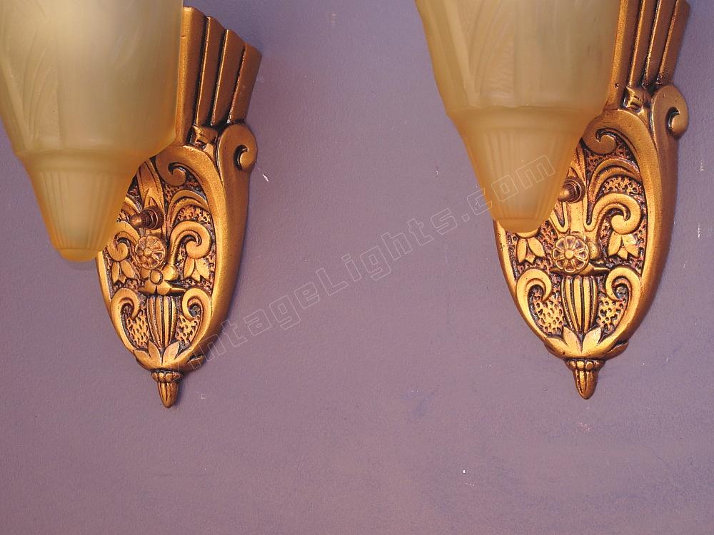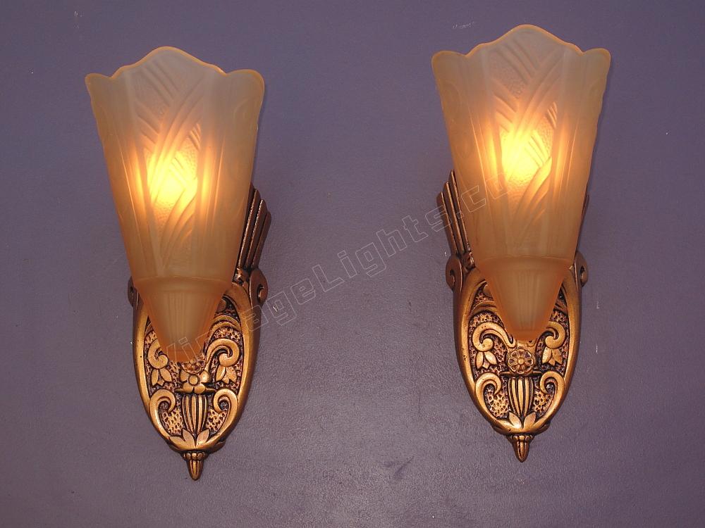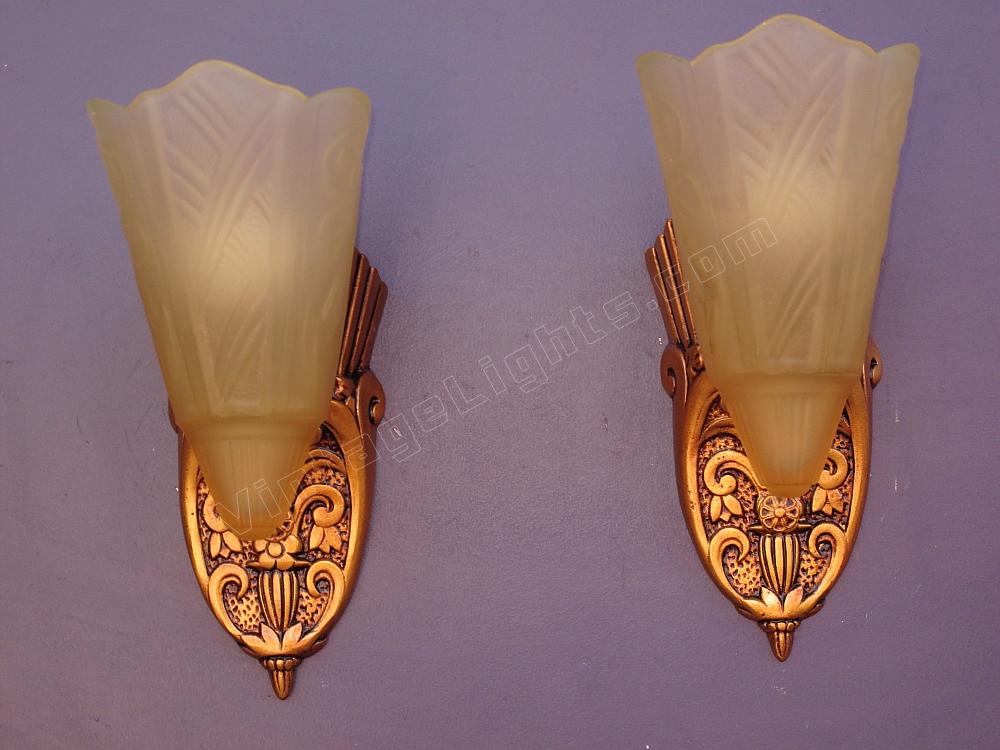 Pair Vintage 1920s - 30s Slip Shade Wall Sconces 2 pair available priced per pair