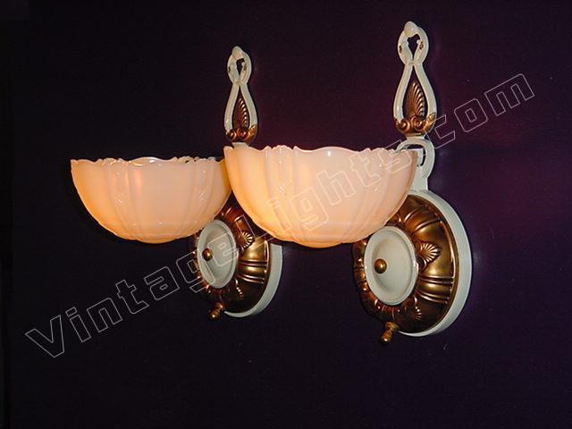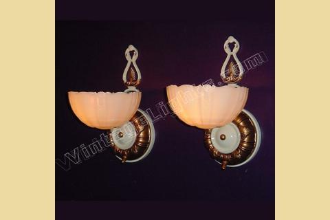 Pair Vintage Mid-Century Deco Custard Slip Shade Sconces