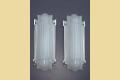 Minimal yet refined, elegant, and very serious. Mini skyscrapers for your wall. The opaque glass shades nest quietly into the polished aluminum frames.