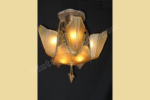 Vintage 6 Slip Shade Bronze Ceiling Fixture by Markel